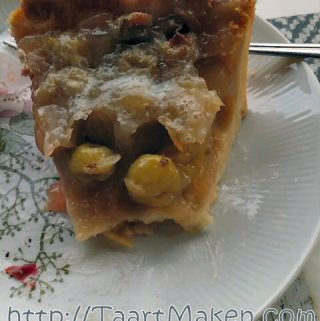 - Alles afbakken in de oven op 175 graden: tot het deeg gebakken is (een 3 kwartier).