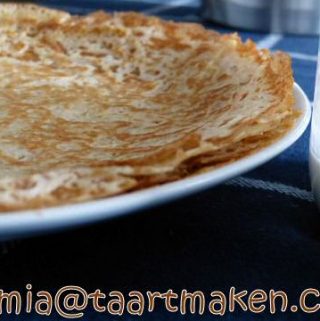 De pannenkoeken zijn echt flinterdun: als je het deeg in de pan giet, krijg je precies een kantwerk en toch komen de pannenkoeken er volledig vol uit. Vers zijn ze krokant aan de buitenkanten maar koud worden ze wat slapper en de smaak is echt top. Wie het zelf wil proeven, die maakt gewoon een boeking via mia@taartmaken.com.