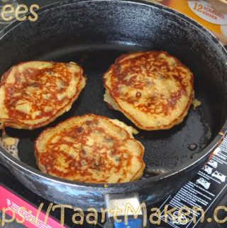 - Keer de pannenkoeken om: ze als de onderkant bruin en de bovenkant droog is. Bak ook de onderkant goudbruin.