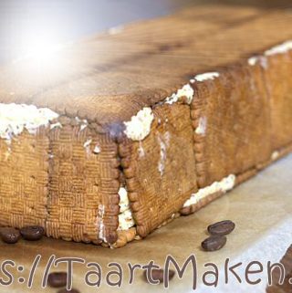 3. Dan de taart opbouwen: Onderste laag koekjes droog laten. Zo blijft de onderkant stevig en jan je makkelijker serveren.